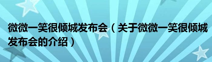 大家好,小新来为大家解答以上的问题。微微一笑很倾城发布会,关于微微一笑很倾城发布会的介绍很多人还不知道,现在让我们一起来看看吧!