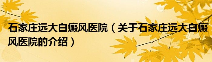 1、河北石家庄远大白癜风医院是一家专业治疗白癜风的医院,不仅仅有着丰富经验的医生团队和完善的医院制度和良好的服务态度,并且有着先进的治疗设备。