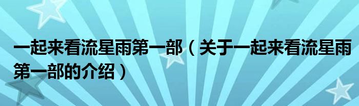 大家好,小新来为大家解答以上的问题。一起来看流星雨第一部,关于一起来看流星雨第一部的介绍很多人还不知道,现在让我们一起来看看吧!