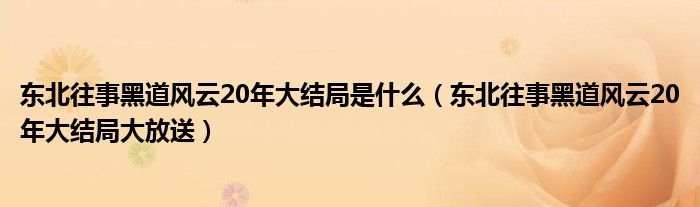 大家好,伊人来为大家解答以上问题。东北往事黑道风云20年大结局是什么,东北往事黑道风云20年大结局大放送很多人还不知道,现在让我们一起来看看吧!