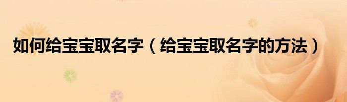 大家好,伊人来为大家解答以上问题。如何给宝宝取名字,给宝宝取名字的方法很多人还不知道,现在让我们一起来看看吧!