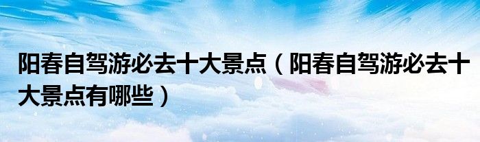 大家好,伊人来为大家解答以上问题。阳春自驾游必去十大景点,阳春自驾游必去十大景点有哪些很多人还不知道,现在让我们一起来看看吧!