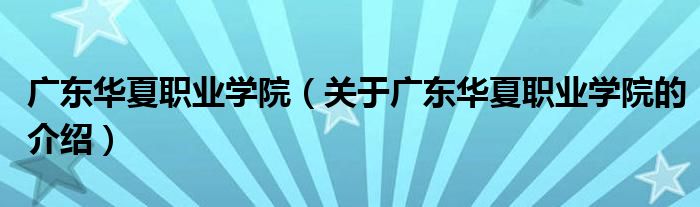 大家好,小新来为大家解答以上的问题。广东华夏职业学院,关于广东华夏职业学院的介绍很多人还不知道,现在让我们一起来看看吧!
