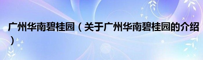大家好,小新来为大家解答以上的问题。广州华南碧桂园,关于广州华南碧桂园的介绍很多人还不知道,现在让我们一起来看看吧!