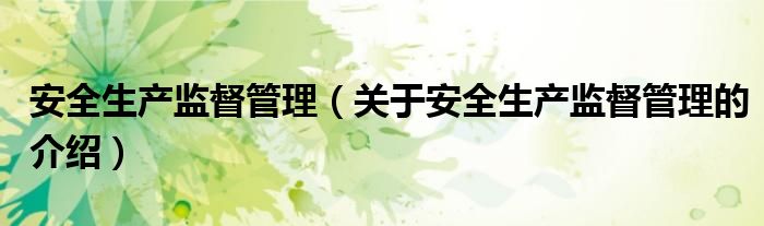 大家好,小新来为大家解答以上的问题。安全生产监督管理,关于安全生产监督管理的介绍很多人还不知道,现在让我们一起来看看吧!