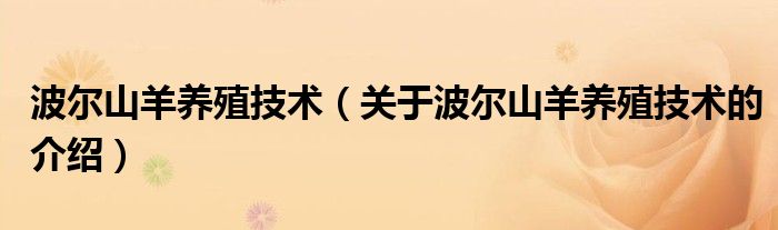 大家好,小新来为大家解答以上的问题。波尔山羊养殖技术,关于波尔山羊养殖技术的介绍很多人还不知道,现在让我们一起来看看吧!1、波尔山羊养殖。2、是一种波尔山羊的养殖技术。本文到此结束,希望对大家有所帮助。