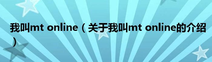 大家好,小新来为大家解答以上的问题。我叫mt online,关于我叫mt online的介绍很多人还不知道,现在让我们一起来看看吧!