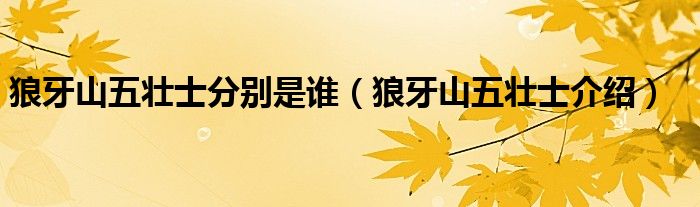 1、狼牙山五壮士是指抗日战争时期,1941年秋在河北易县狼牙山跳崖身亡的5名国民革命军八路军战士。他们是马宝玉、胡德林、胡福才、葛振林和宋学义。