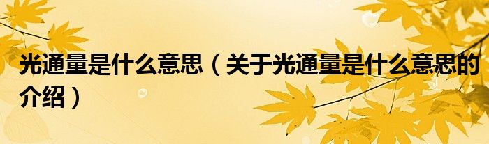 大家好,小新来为大家解答以上的问题。光通量是什么意思,关于光通量是什么意思的介绍很多人还不知道,现在让我们一起来看看吧!