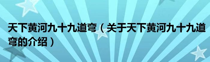 大家好,小新来为大家解答以上的问题。天下黄河九十九道弯,关于天下黄河九十九道弯的介绍很多人还不知道,现在让我们一起来看看吧!