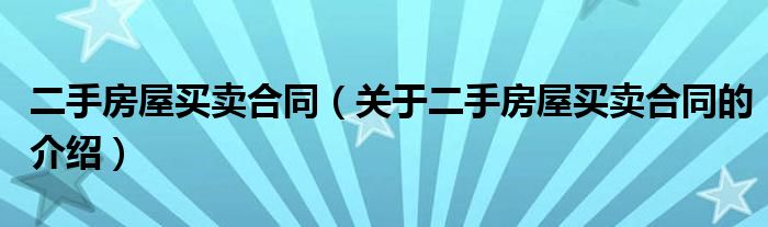 大家好,小新来为大家解答以上的问题。二手房屋买卖合同,关于二手房屋买卖合同的介绍很多人还不知道,现在让我们一起来看看吧!
