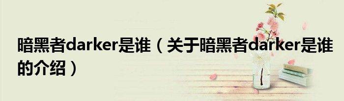 大家好,小新来为大家解答以上的问题。暗黑者darker是谁,关于暗黑者darker是谁的介绍很多人还不知道,现在让我们一起来看看吧!