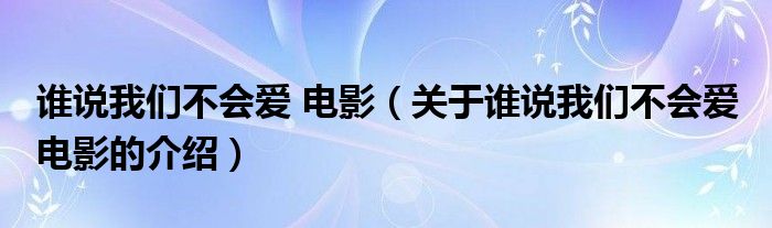 大家好,小新来为大家解答以上的问题。谁说我们不会爱 电影,关于谁说我们不会爱 电影的介绍很多人还不知道,现在让我们一起来看看吧!