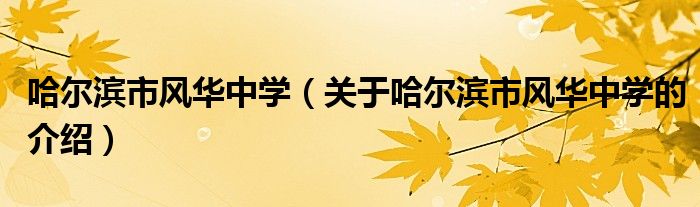大家好,小新来为大家解答以上的问题。哈尔滨市风华中学,关于哈尔滨市风华中学的介绍很多人还不知道,现在让我们一起来看看吧!