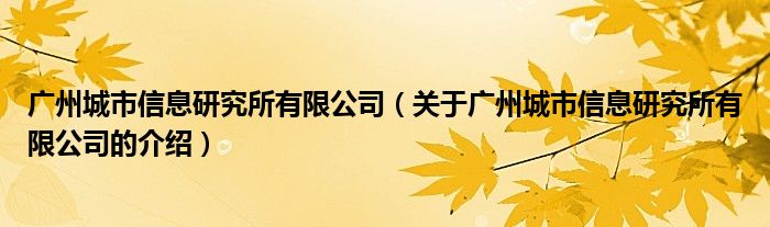 大家好,小新来为大家解答以上的问题。广州城市信息研究所有限公司,关于广州城市信息研究所有限公司的介绍很多人还不知道,现在让我们一起来看看吧!