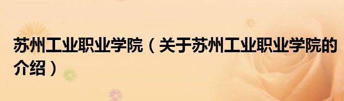 1、苏州工业职业技术学院(SuzhouVocationalInstituteofIndustrialTechnology),简称苏工院,坐落于苏州市,是苏州市属、江苏省主管的,是江苏省示范性高职院校建设单位。