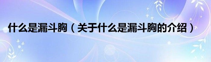 大家好,小新来为大家解答以上的问题。什么是漏斗胸,关于什么是漏斗胸的介绍很多人还不知道,现在让我们一起来看看吧!