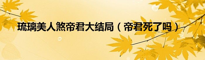 大家好,伊人来为大家解答以上问题。琉璃美人煞帝君大结局,帝君死了吗很多人还不知道,现在让我们一起来看看吧!
