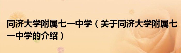 大家好,小新来为大家解答以上的问题。同济大学附属七一中学,关于同济大学附属七一中学的介绍很多人还不知道,现在让我们一起来看看吧!