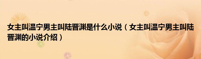 大家好,伊人来为大家解答以上问题。女主叫温宁男主叫陆晋渊是什么小说,女主叫温宁男主叫陆晋渊的小说介绍很多人还不知道,现在让我们一起来看看吧!