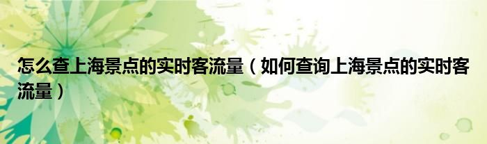 大家好,伊人来为大家解答以上问题。怎么查上海景点的实时客流量,如何查询上海景点的实时客流量很多人还不知道,现在让我们一起来看看吧!