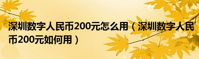 大家好,伊人来为大家解答以上问题。深圳数字人民币200元怎么用,深圳数字人民币200元如何用很多人还不知道,现在让我们一起来看看吧!