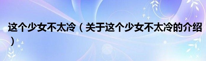 大家好,小新来为大家解答以上的问题。这个少女不太冷,关于这个少女不太冷的介绍很多人还不知道,现在让我们一起来看看吧!