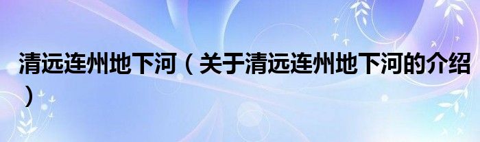 大家好,小新来为大家解答以上的问题。清远连州地下河,关于清远连州地下河的介绍很多人还不知道,现在让我们一起来看看吧!