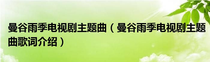 大家好,伊人来为大家解答以上问题。曼谷雨季电视剧主题曲,曼谷雨季电视剧主题曲歌词介绍很多人还不知道,现在让我们一起来看看吧!