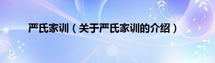 大家好,小新来为大家解答以上的问题。严氏家训,关于严氏家训的介绍很多人还不知道,现在让我们一起来看看吧!