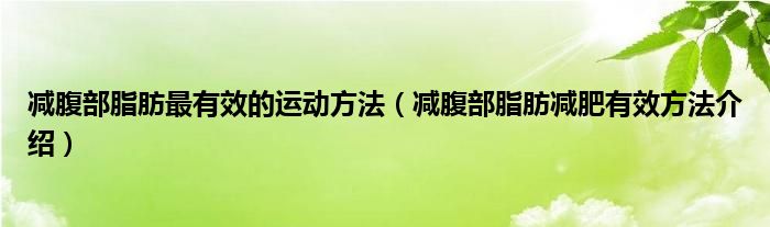 大家好,伊人来为大家解答以上问题。减腹部脂肪最有效的运动方法,减腹部脂肪减肥有效方法介绍很多人还不知道,现在让我们一起来看看吧!