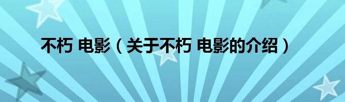 大家好,小新来为大家解答以上的问题。不朽 电影,关于不朽 电影的介绍很多人还不知道,现在让我们一起来看看吧!