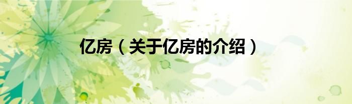 大家好,小新来为大家解答以上的问题。亿房,关于亿房的介绍很多人还不知道,现在让我们一起来看看吧!