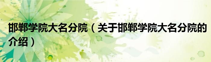 大家好,小新来为大家解答以上的问题。邯郸学院大名分院,关于邯郸学院大名分院的介绍很多人还不知道,现在让我们一起来看看吧!