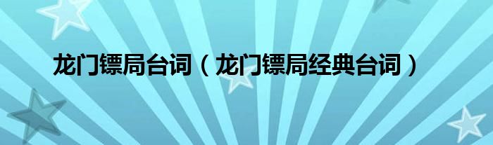大家好,伊人来为大家解答以上问题。龙门镖局台词,龙门镖局经典台词很多人还不知道,现在让我们一起来看看吧!
