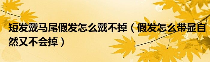 大家好,伊人来为大家解答以上问题。短发戴马尾假发怎么戴不掉,假发怎么带显自然又不会掉很多人还不知道,现在让我们一起来看看吧!