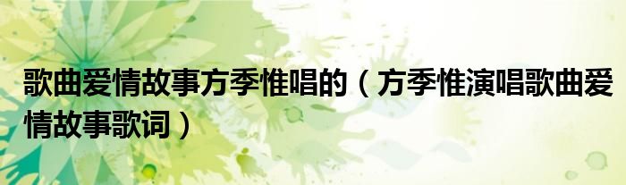 大家好,伊人来为大家解答以上问题。歌曲爱情故事方季惟唱的,方季惟演唱歌曲爱情故事歌词很多人还不知道,现在让我们一起来看看吧!