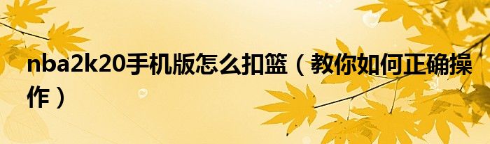 大家好,伊人来为大家解答以上问题。nba2k20手机版怎么扣篮,教你如何正确操作很多人还不知道,现在让我们一起来看看吧!