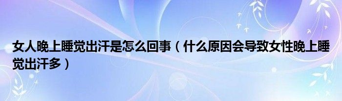 1、在睡眠过程中,女性的交感神经比清醒状态下更加兴奋,容易刺激体内腺体的分泌,包括分泌汗液较多的汗腺。而且睡觉的时候会保暖,比如过重的被褥会增加人体内的热量。此时,人体为了达到体温的正常平衡,会通过出汗将体内多余的热量排走,从而达到降低体温的目的,使体温回到正常范围。