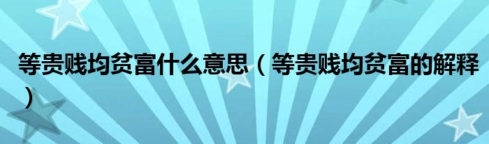 大家好,伊人来为大家解答以上问题。等贵贱均贫富什么意思,等贵贱均贫富的解释很多人还不知道,现在让我们一起来看看吧!