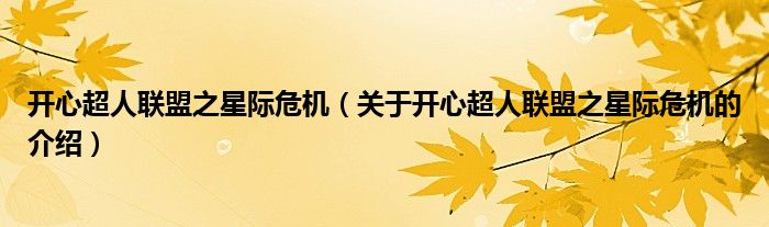 大家好,小新来为大家解答以上的问题。开心超人联盟之星际危机,关于开心超人联盟之星际危机的介绍很多人还不知道,现在让我们一起来看看吧!