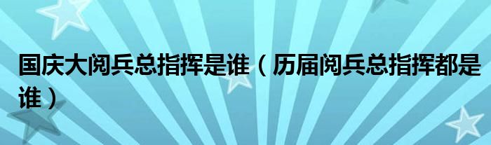 大家好,伊人来为大家解答以上问题。国庆大阅兵总指挥是谁,历届阅兵总指挥都是谁很多人还不知道,现在让我们一起来看看吧!