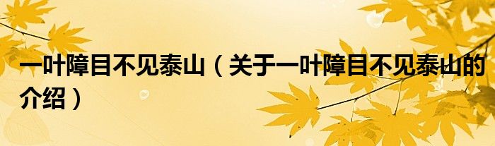 2、bù jiàn tài shān,汉语成语,意思是一片树叶挡住了眼睛。