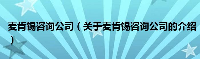大家好,小新来为大家解答以上的问题。麦肯锡咨询公司,关于麦肯锡咨询公司的介绍很多人还不知道,现在让我们一起来看看吧!1、麦肯锡咨询公司麦肯锡公司是世界级领先的全球管理咨询公司。本文到此结束,希望对大家有所帮助。