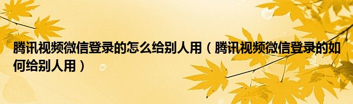 大家好,伊人来为大家解答以上问题。腾讯视频微信登录的怎么给别人用,腾讯视频微信登录的如何给别人用很多人还不知道,现在让我们一起来看看吧!