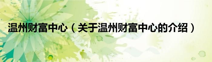 大家好,小新来为大家解答以上的问题。温州财富中心,关于温州财富中心的介绍很多人还不知道,现在让我们一起来看看吧!