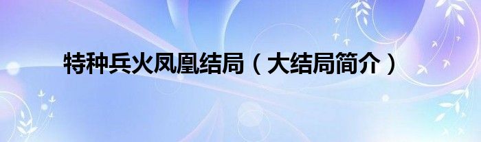 大家好,伊人来为大家解答以上问题。特种兵火凤凰结局,大结局简介很多人还不知道,现在让我们一起来看看吧!