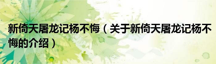 大家好,小新来为大家解答以上的问题。新倚天屠龙记杨不悔,关于新倚天屠龙记杨不悔的介绍很多人还不知道,现在让我们一起来看看吧!
