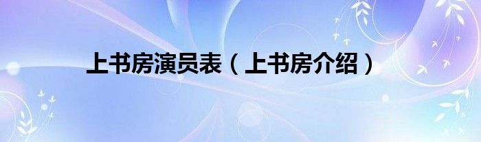 大家好,伊人来为大家解答以上问题。上书房演员表,上书房介绍很多人还不知道,现在让我们一起来看看吧!