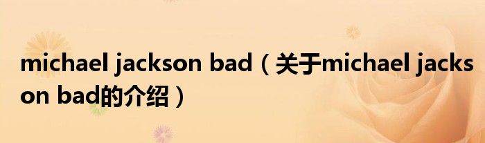 大家好,小新来为大家解答以上的问题。michael jackson bad,关于michael jackson bad的介绍很多人还不知道,现在让我们一起来看看吧!